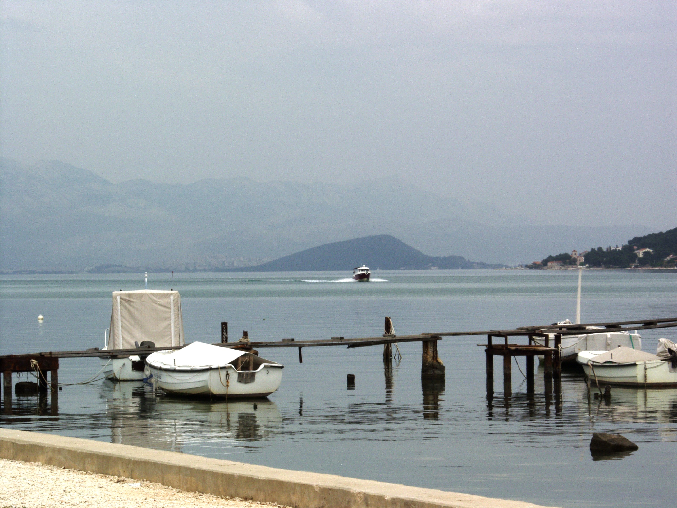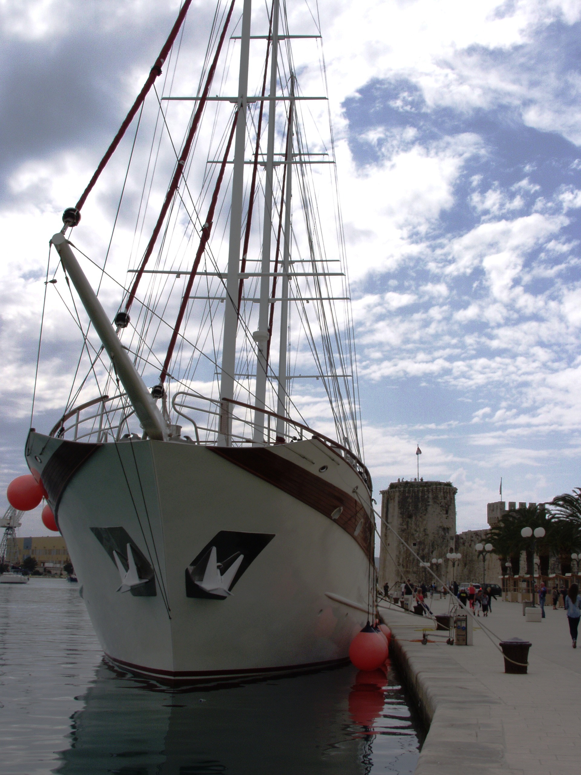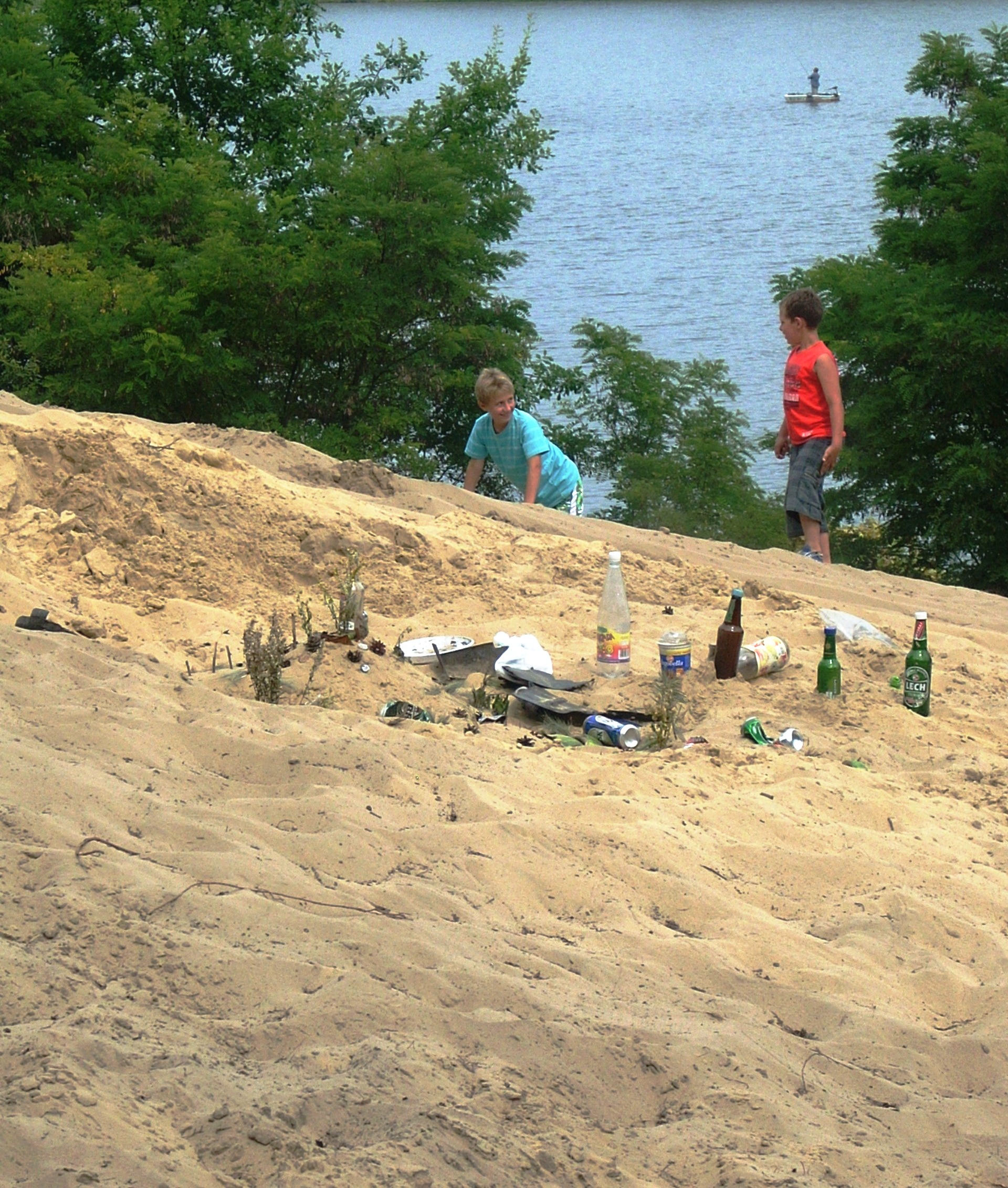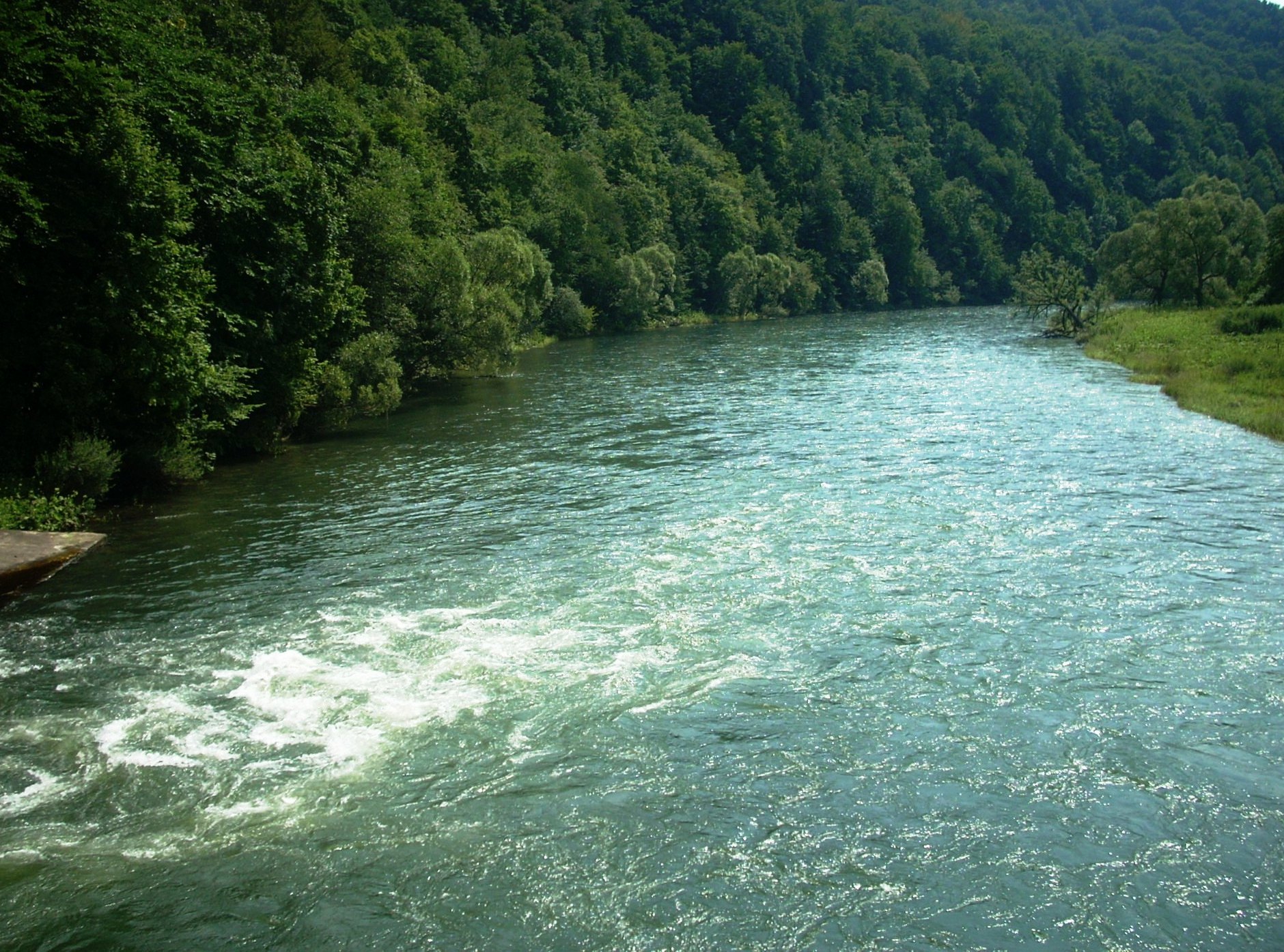 wpatrując się sunącą poniżej wielką brudną wodę i barkę