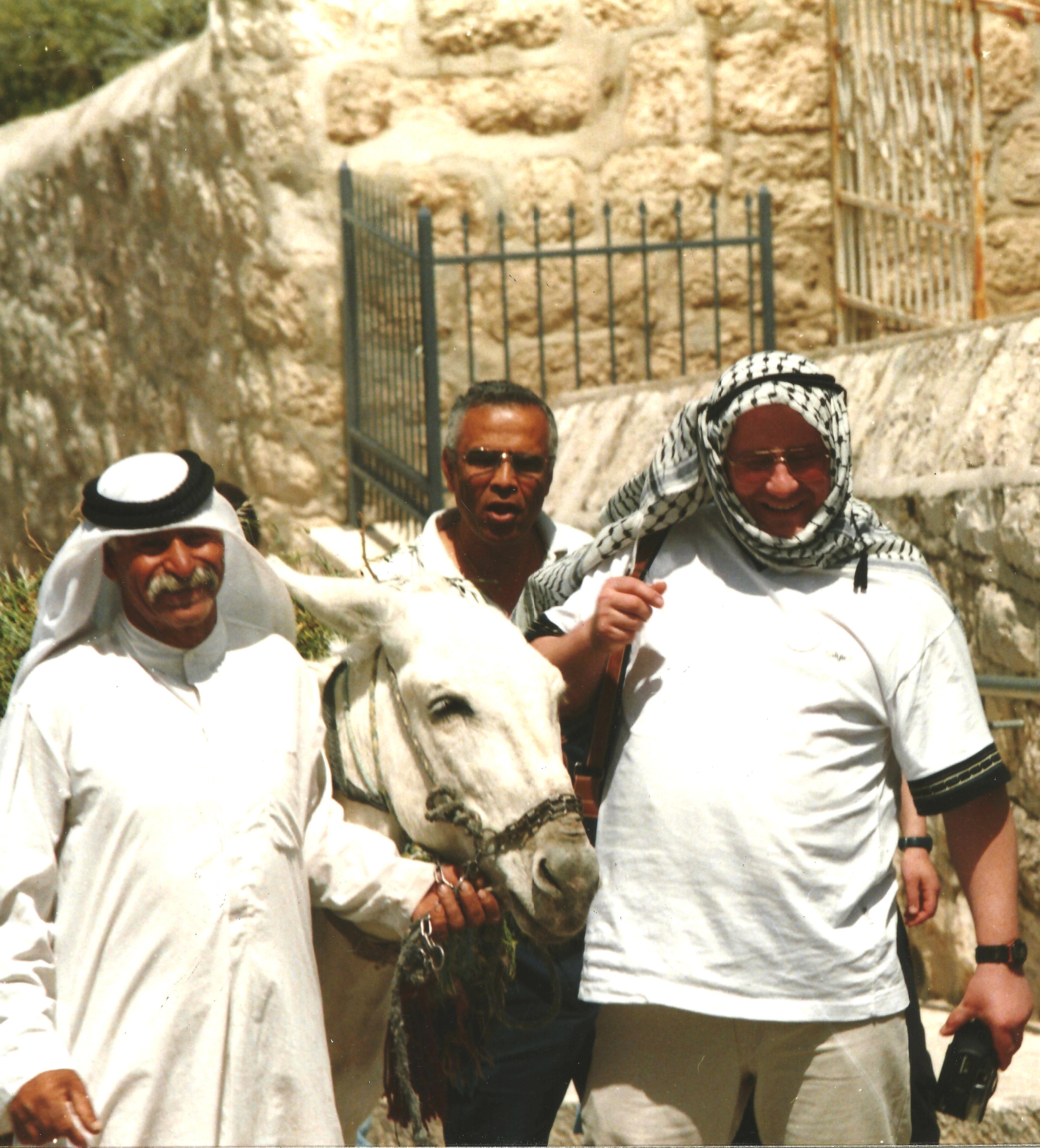 trzymając zwinięte gazety kryjące arabskie tytuły
